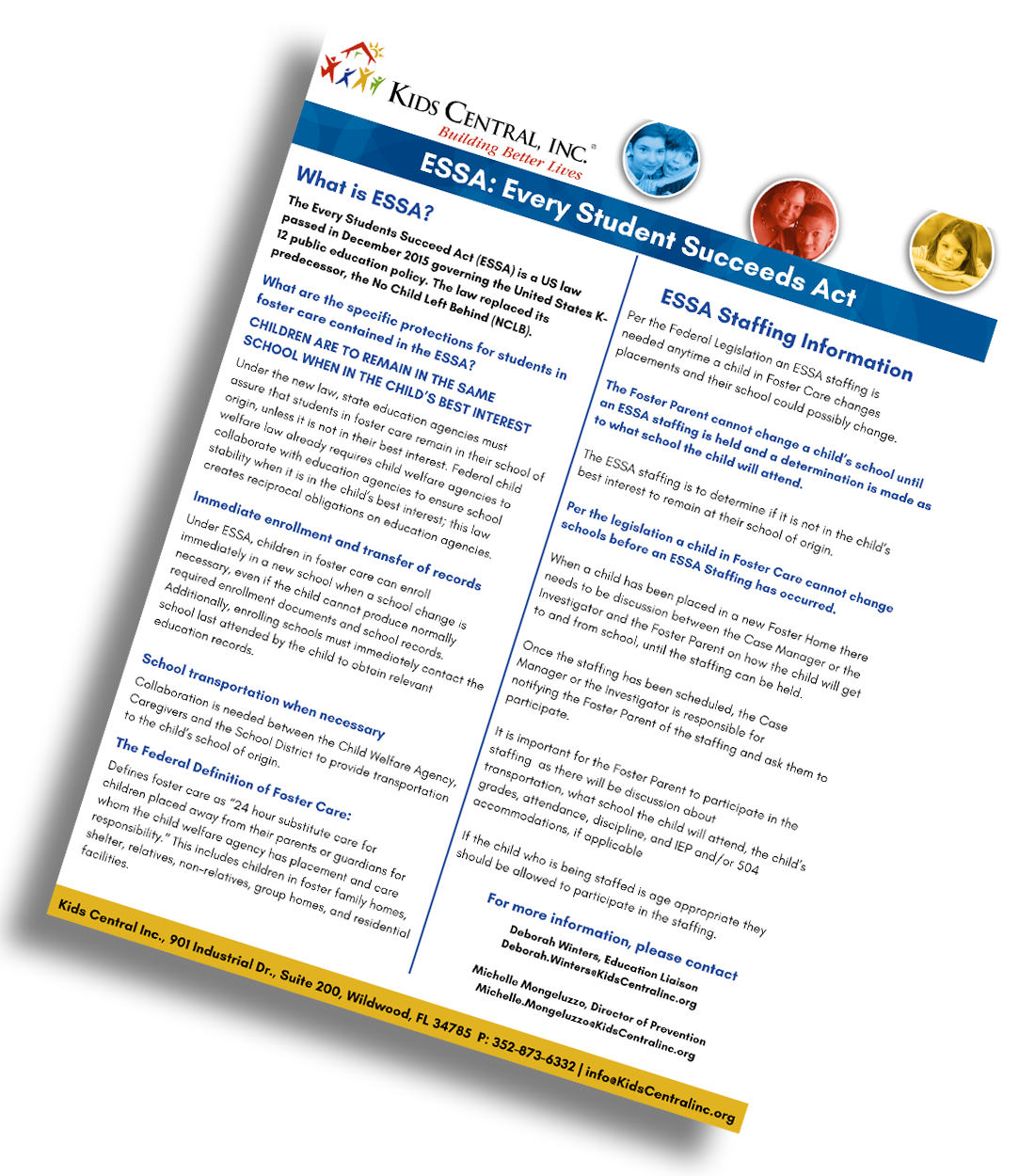 The Educational Liaison work diligently to advocate for almost 700 school-aged children in Circuit 5. Kids Central’s multi-faceted solution to improving educational outcomes for youth in foster care include: